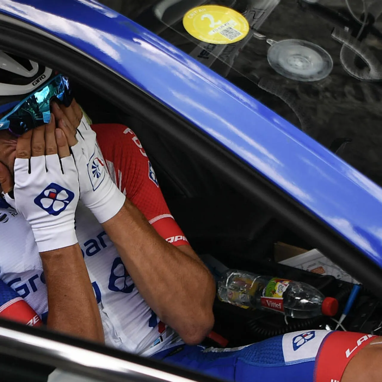 Au kilomètre 36, Thibaut Pinot s’écarte, grimace, puis s’arrête. Cuissard arraché, cuisse bandée, visage défait : abandon. En larmes, il monte dans la voiture de la Groupama-FDJ. Une déchirure musculaire, et tout un pays chavire.