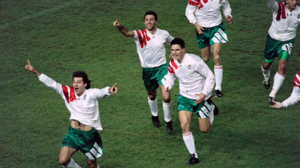 La Bulgarie part en contre. Penev sert, et Emil Kostadinov surgit. Frappe. Filet.